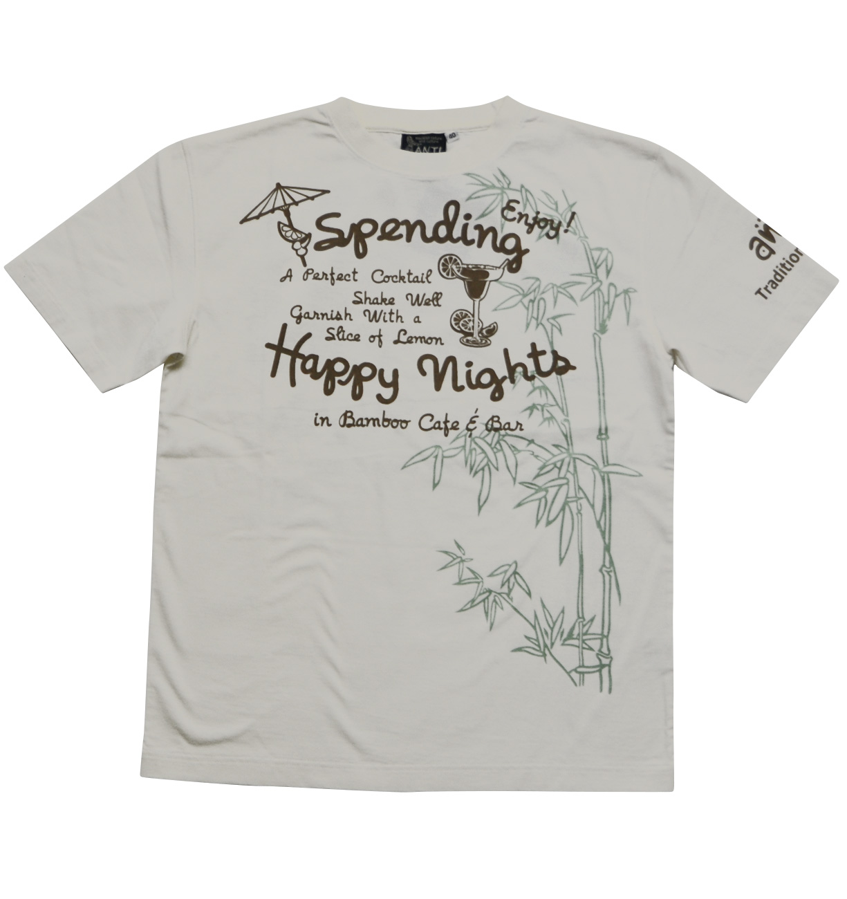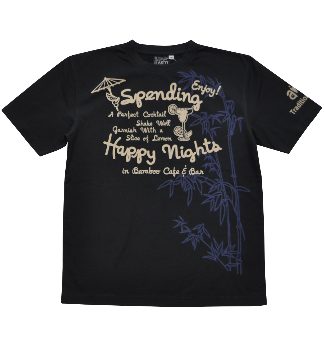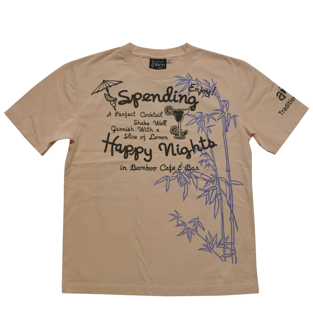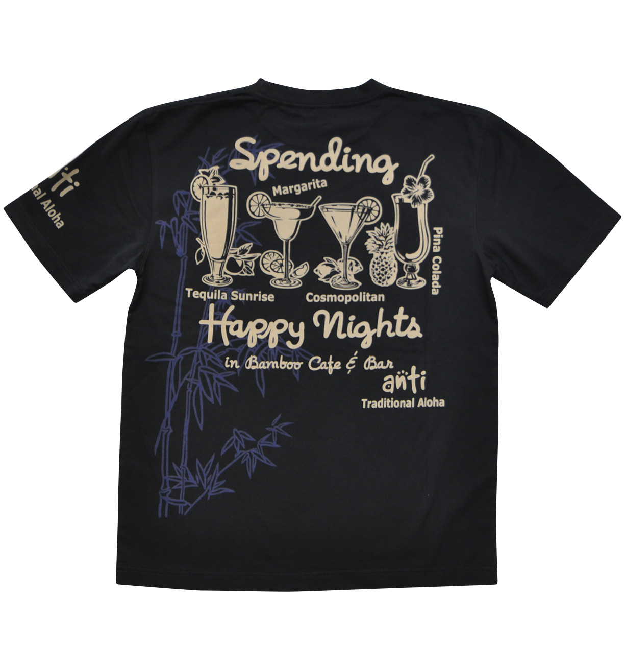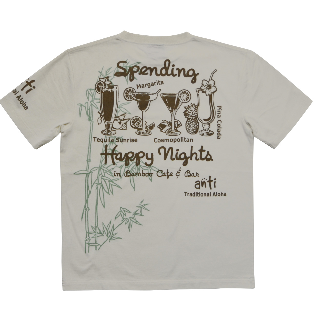 マルガリータ等、トロピカル系のカクテルをモチーフとした、オリエンタル&南国ムード満点の1枚はフロント&バック共に同様の図案が入り、どちらかでも南国仕様。南の島に想いをのせて、休日は脱力してラクに行こう!