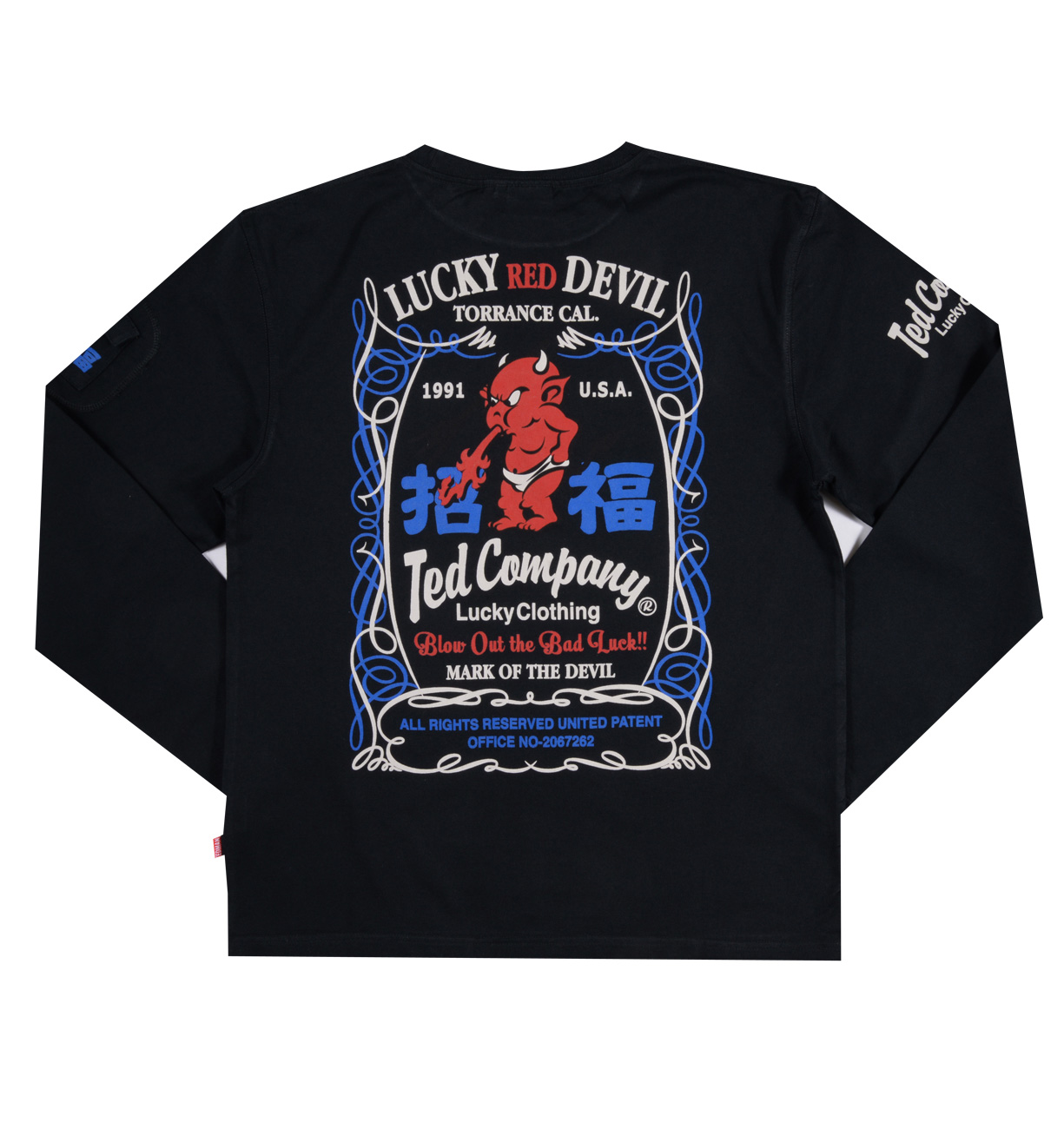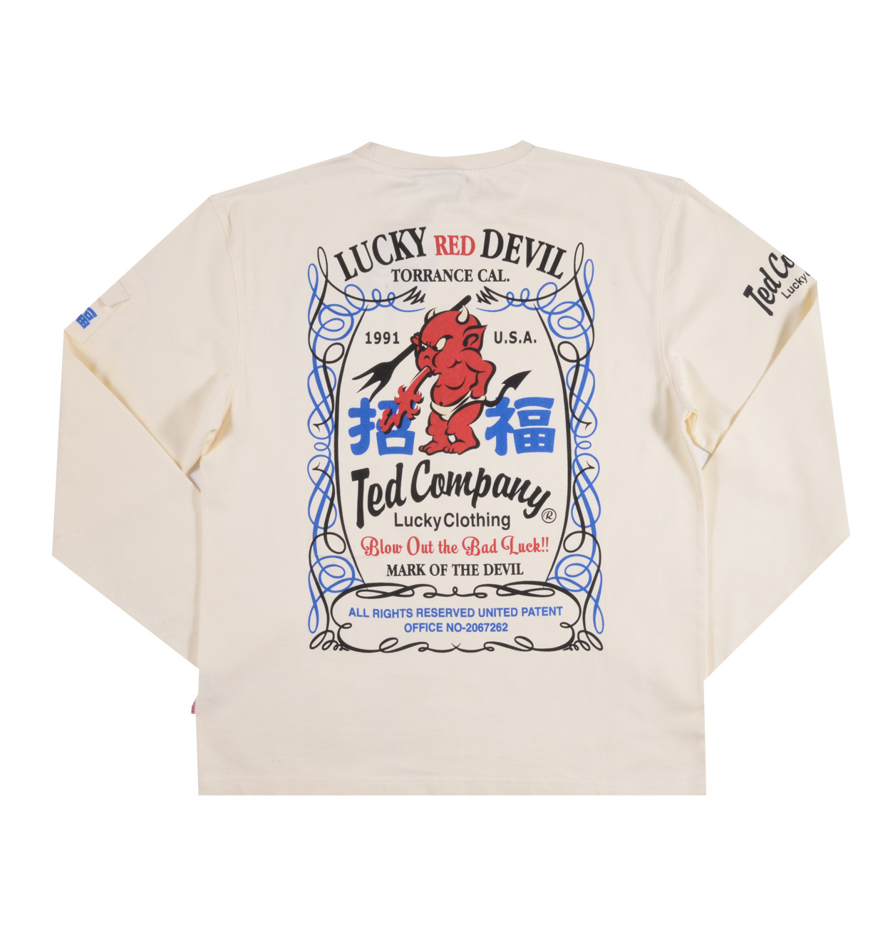 幸運を呼ぶ赤い悪魔テッドマンの招福Tシャツ!ロゴにピンストライプがあしらわれていて、これ車&バイク乗りの方は必見です!