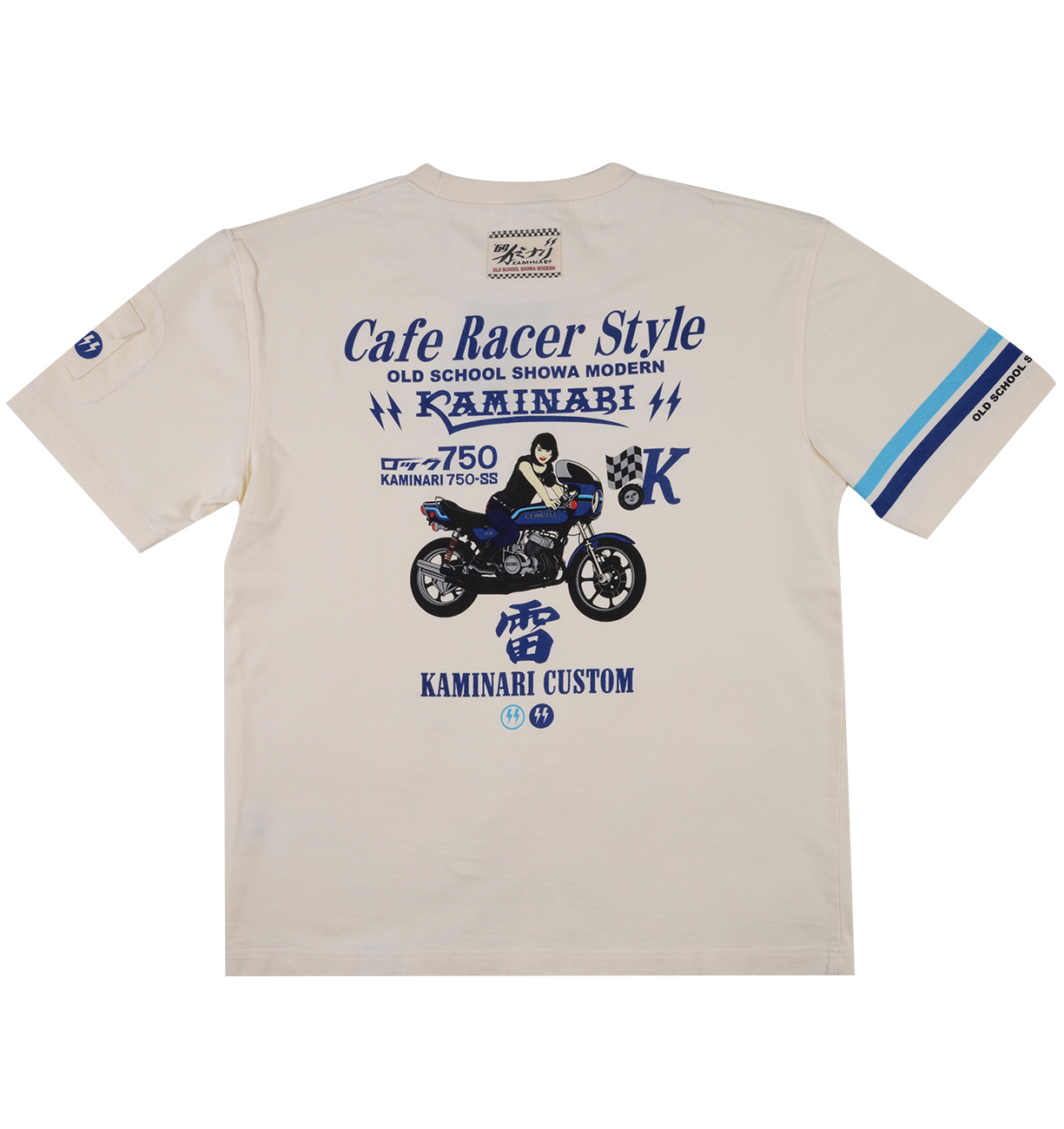 あのジャジャ馬750SSをカフェレーサー風にカスタムして 後続車に「ついてこれるの?」と言わんばかりの表情で登場! その子の衣装、全てエフ商会のレーベルで着こなしてます。