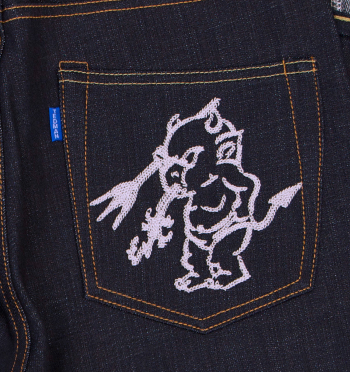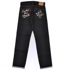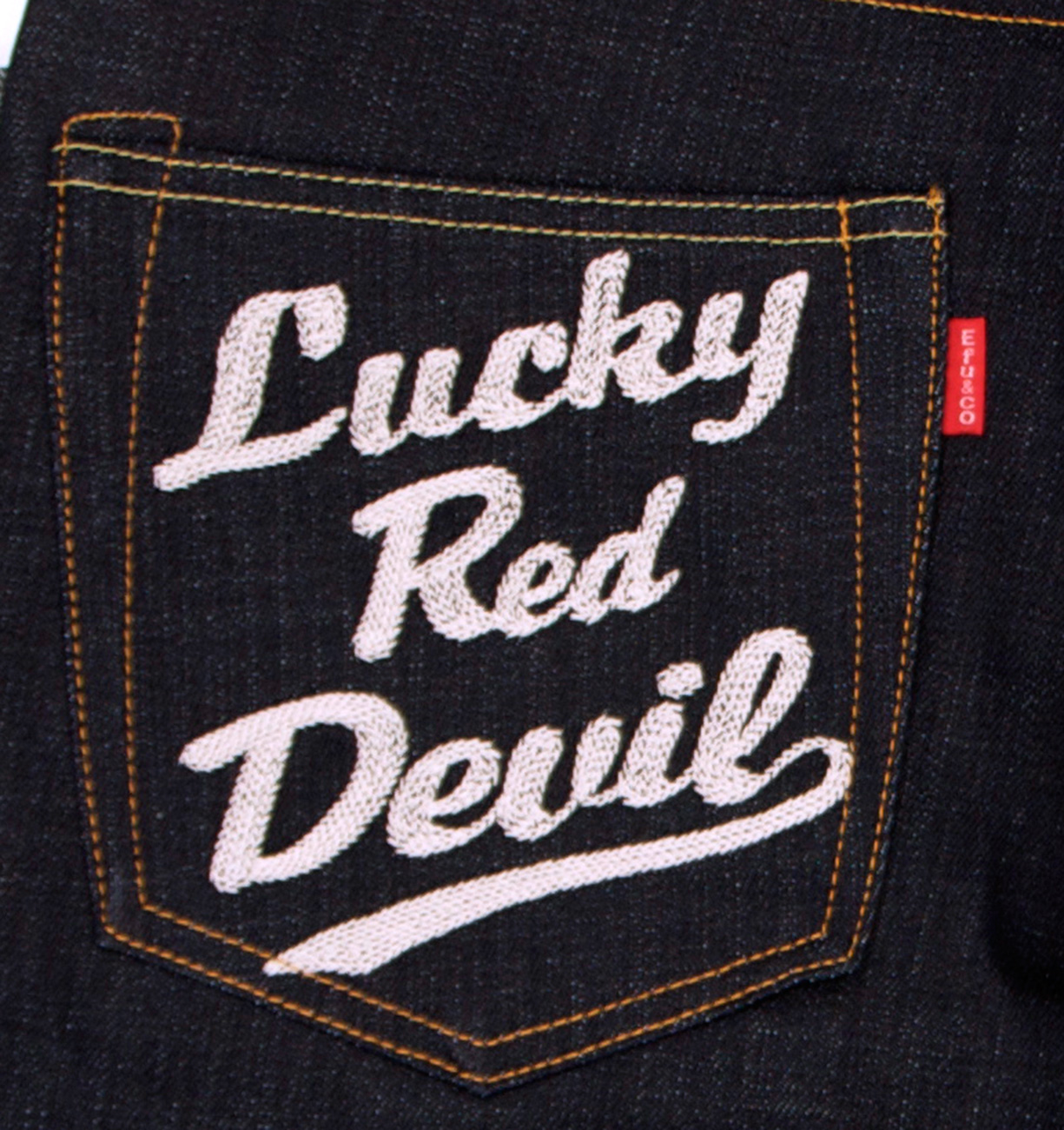 糸は世界最高級の繊維強力を持つ高級米綿(サンフォーキン綿)と超長綿を使用したシャリ感、重量感のある独自の極スラブ。シャリ感を出す為に撚り回数を通常より多くする事により、ムラ感が強めなのが特徴。旧式力織機で弱テンションに織り上げることでザラツキ感とゴツゴツとした独特の風合いのデニムに仕上げてあります。色はナチュラルなオールドブルー。
