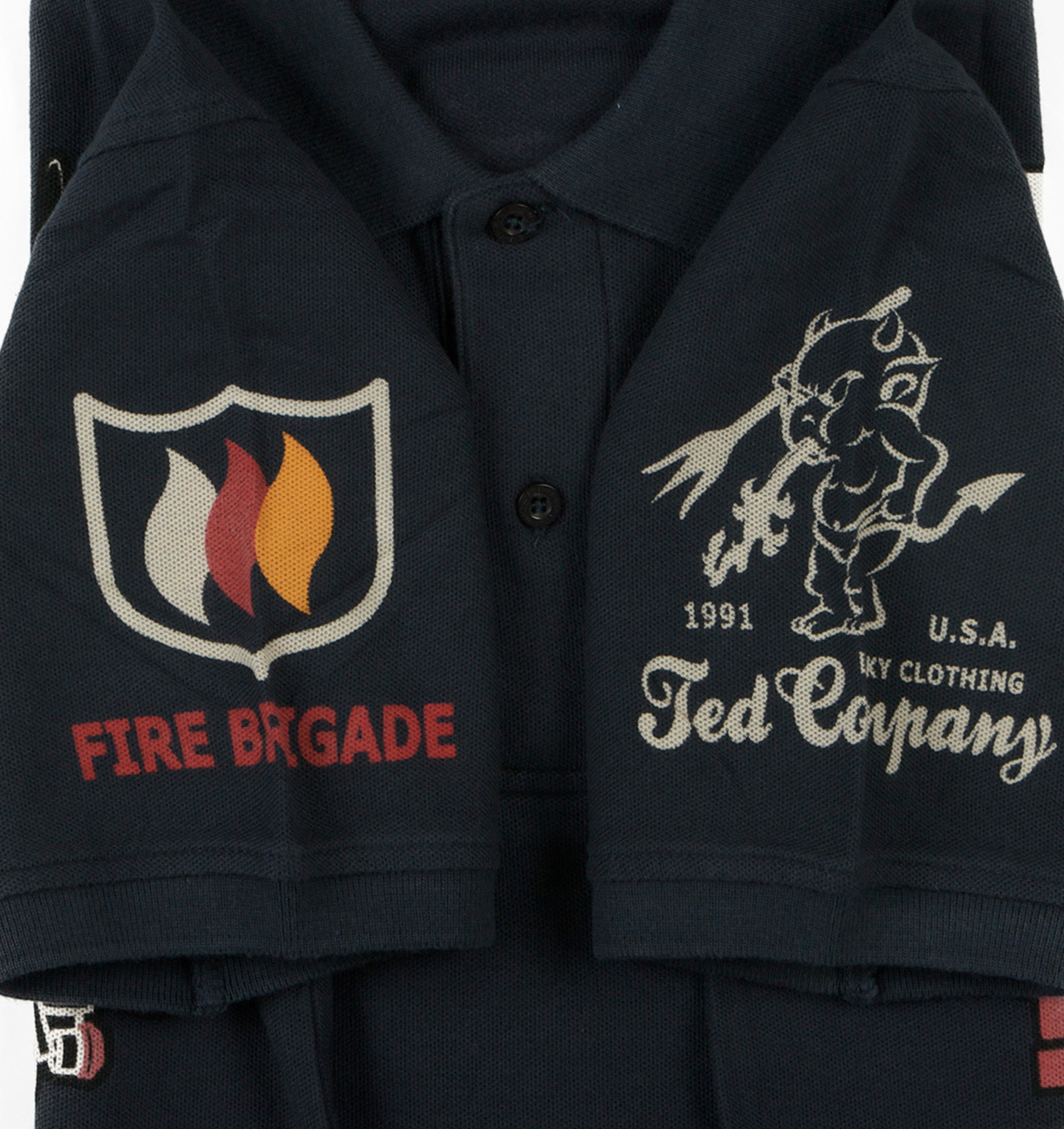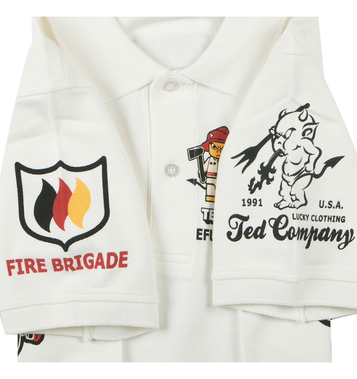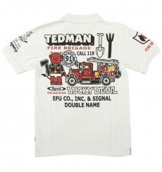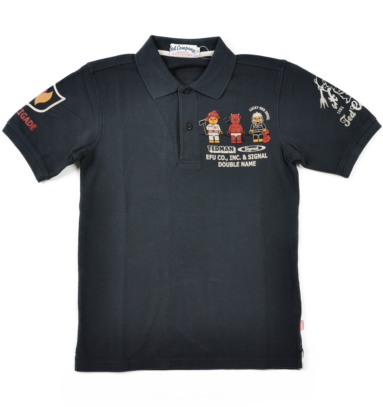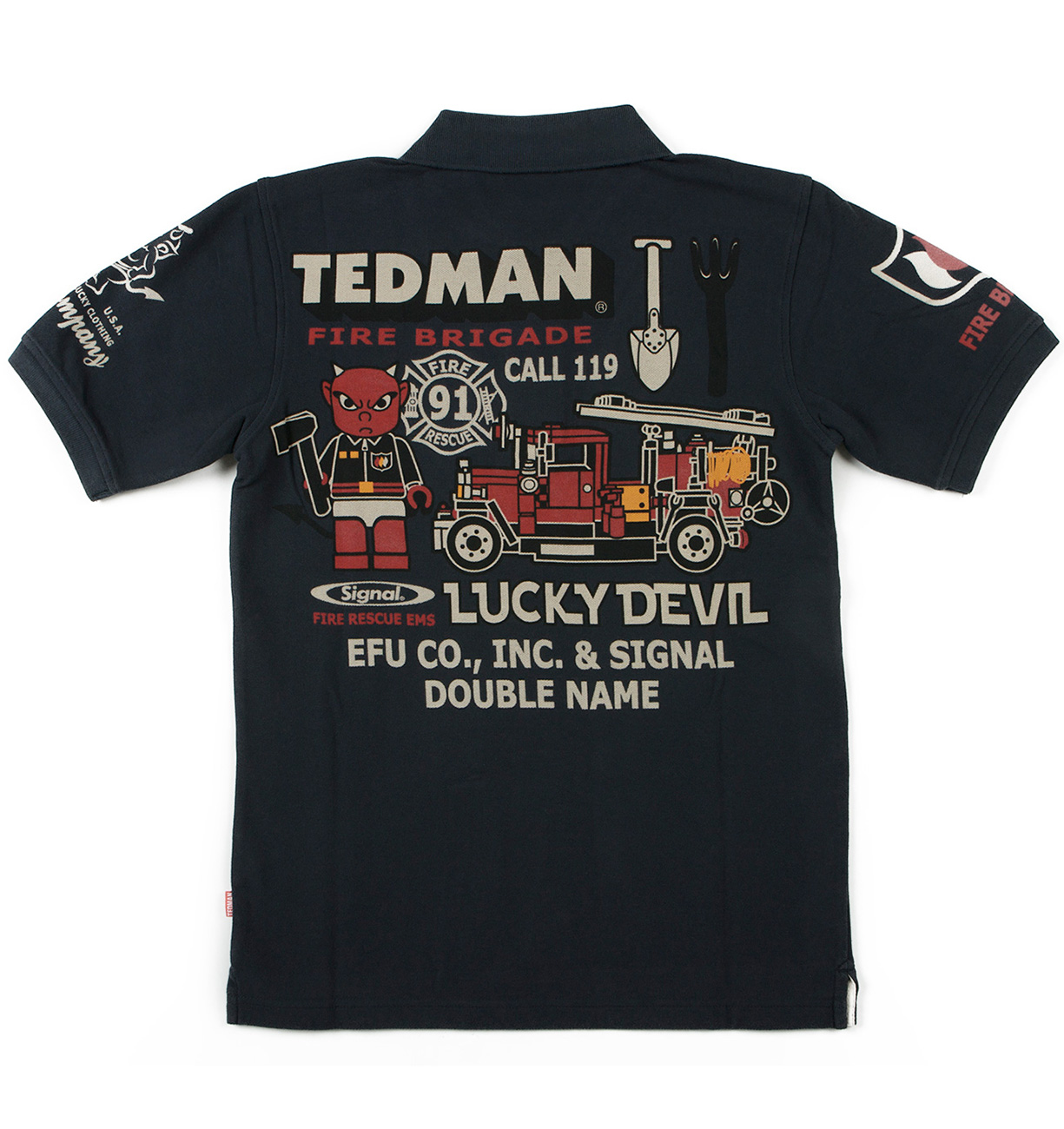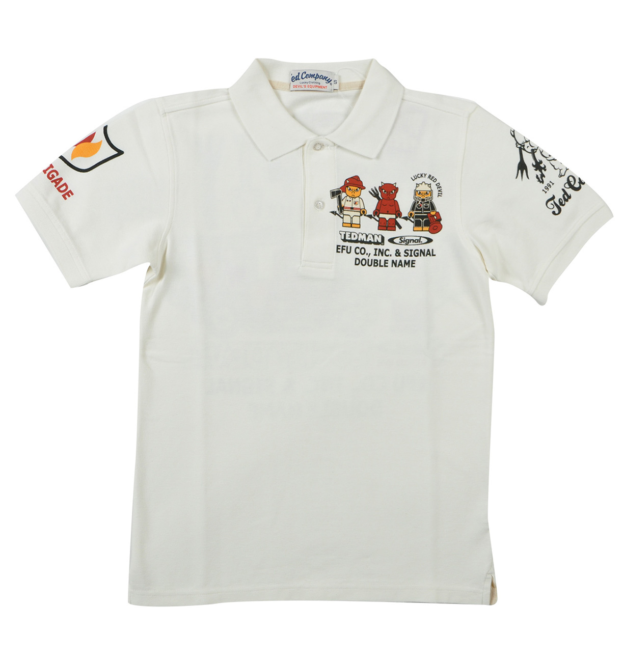 過去に度々リリースされ好評のシグナルとのコラボモデル。今回は消防士に扮したテッドマンがブロック人形に!?遊び心溢れるデザインが魅力的なポロシャツだ。
