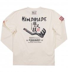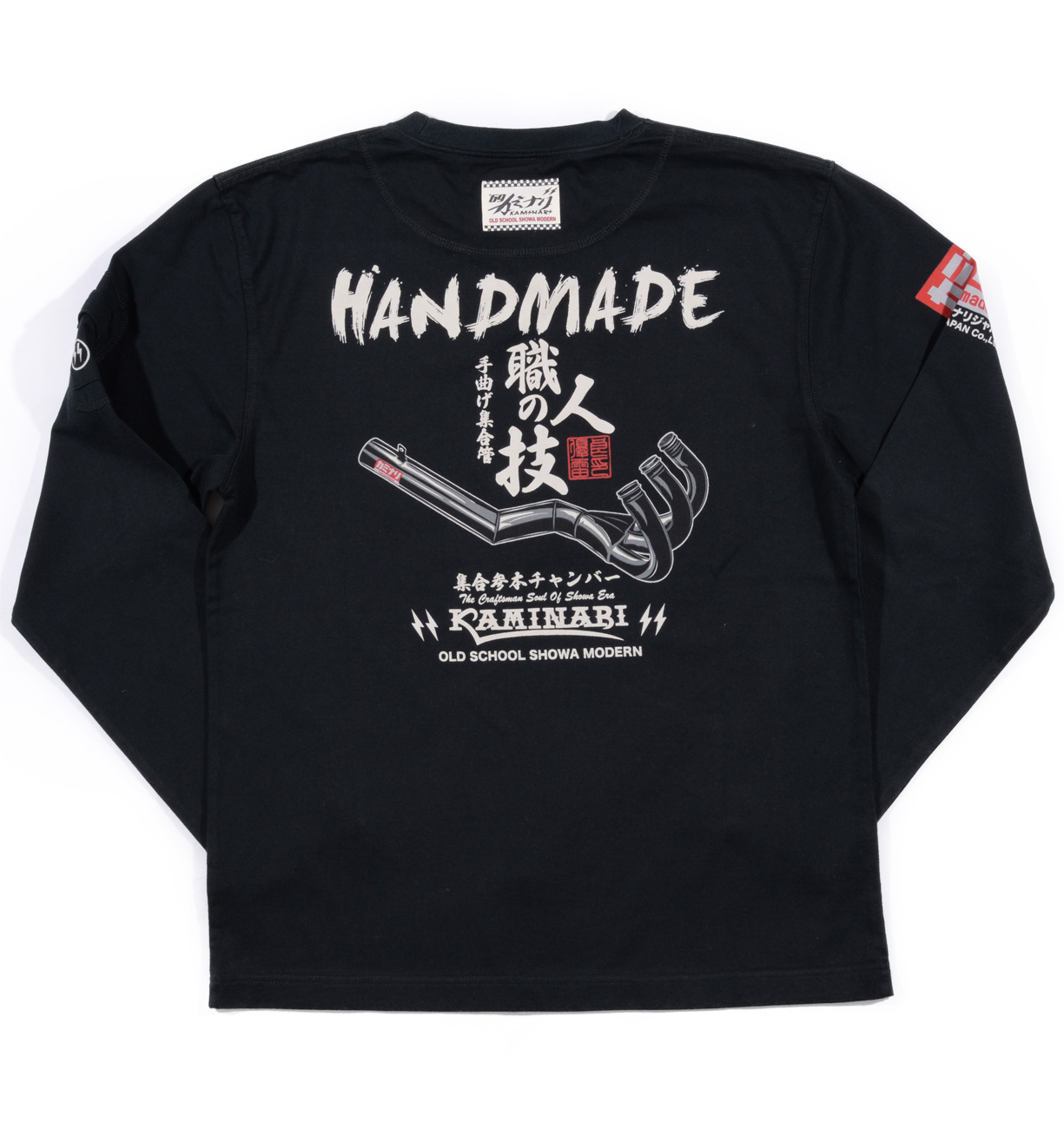 手曲げマフラーシリーズ第3弾も2スト用集合マフラー。今回は原点に返りパーツ(マフラー)が主役となって、一目瞭然でわかる耐熱ステッカーのパロディーもつけ、昭和感あふれるデザイン。