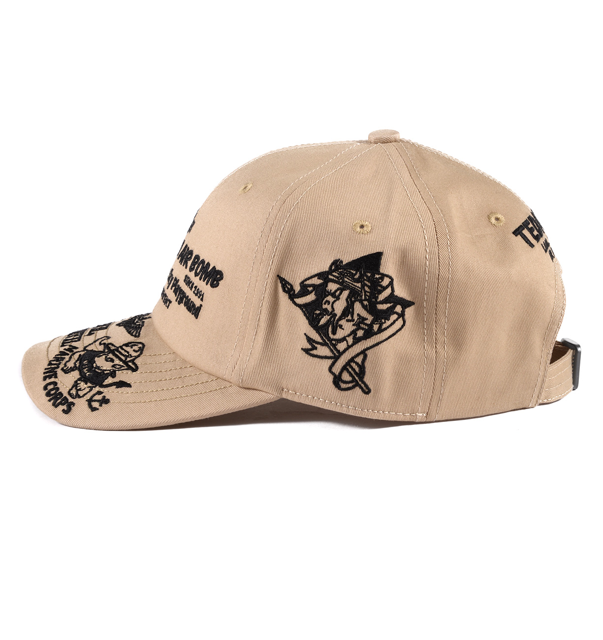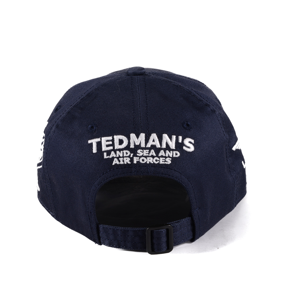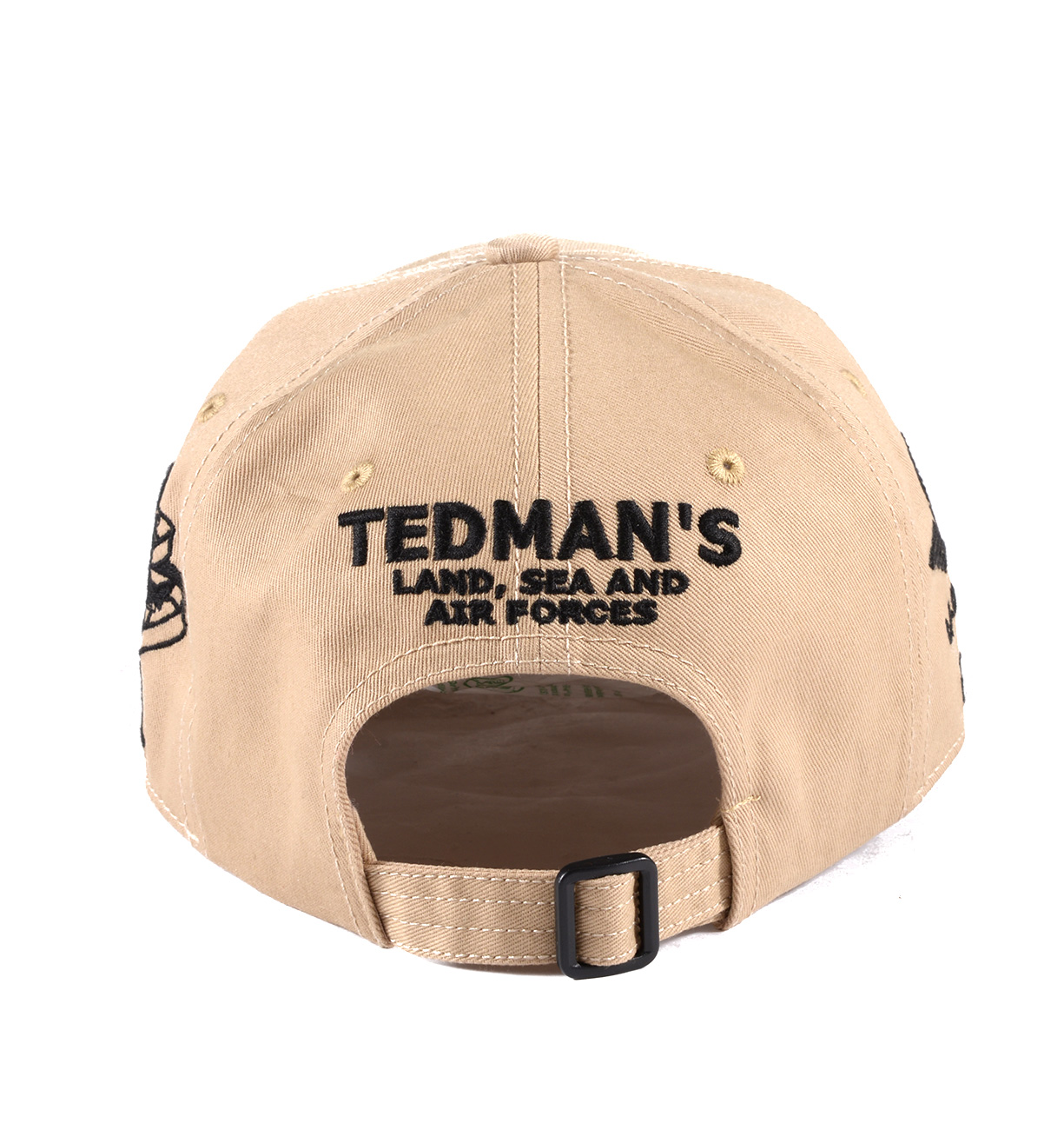 好評のテッドマンのミリタリーモチーフ。コットン素材に刺繍が施されていて、いつものキャップとは印象がガラリ