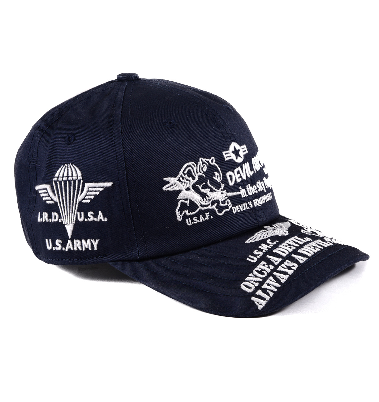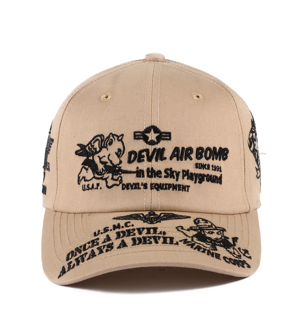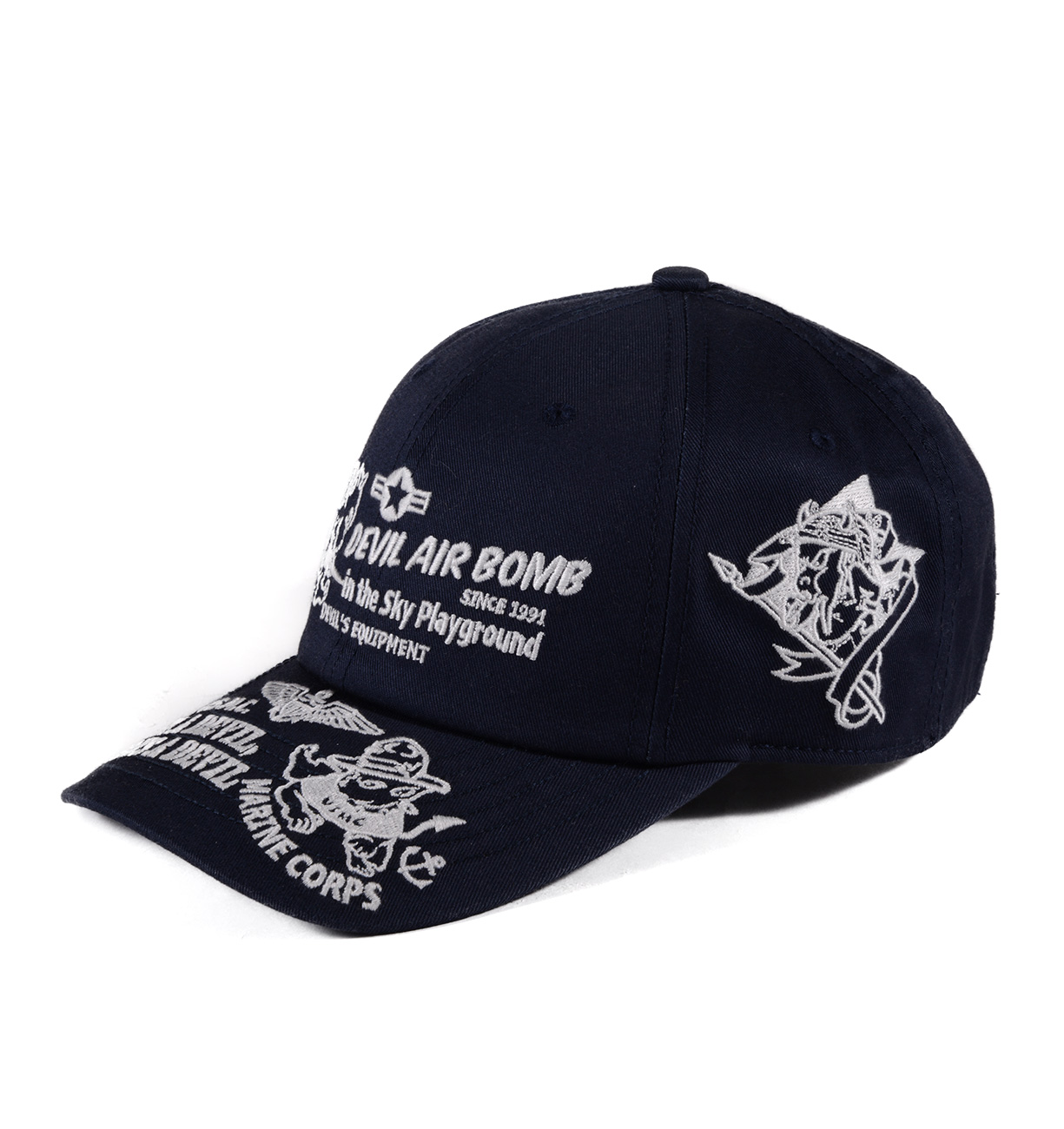 好評のテッドマンのミリタリーモチーフ。コットン素材に刺繍が施されていて、いつものキャップとは印象がガラリ
