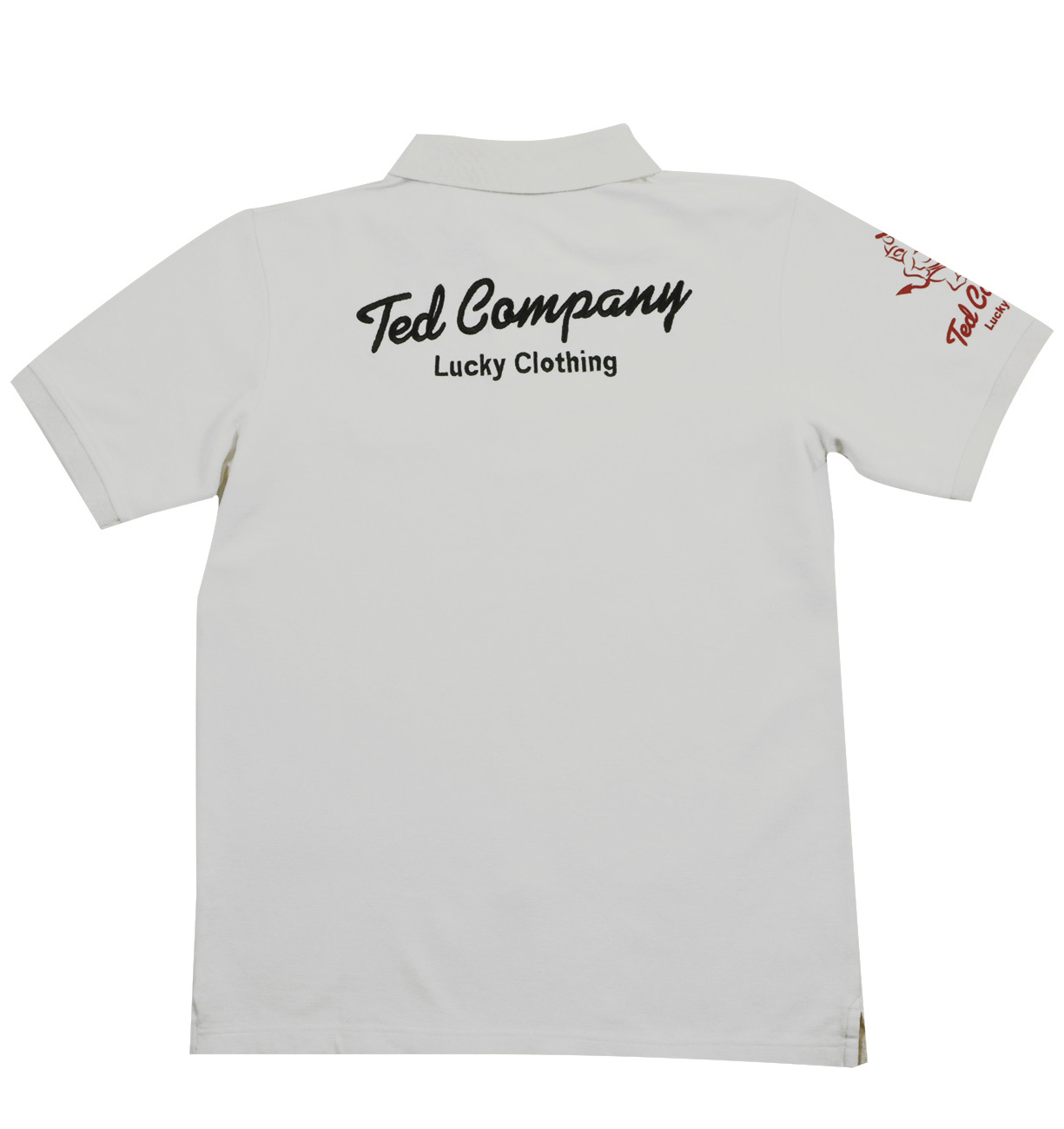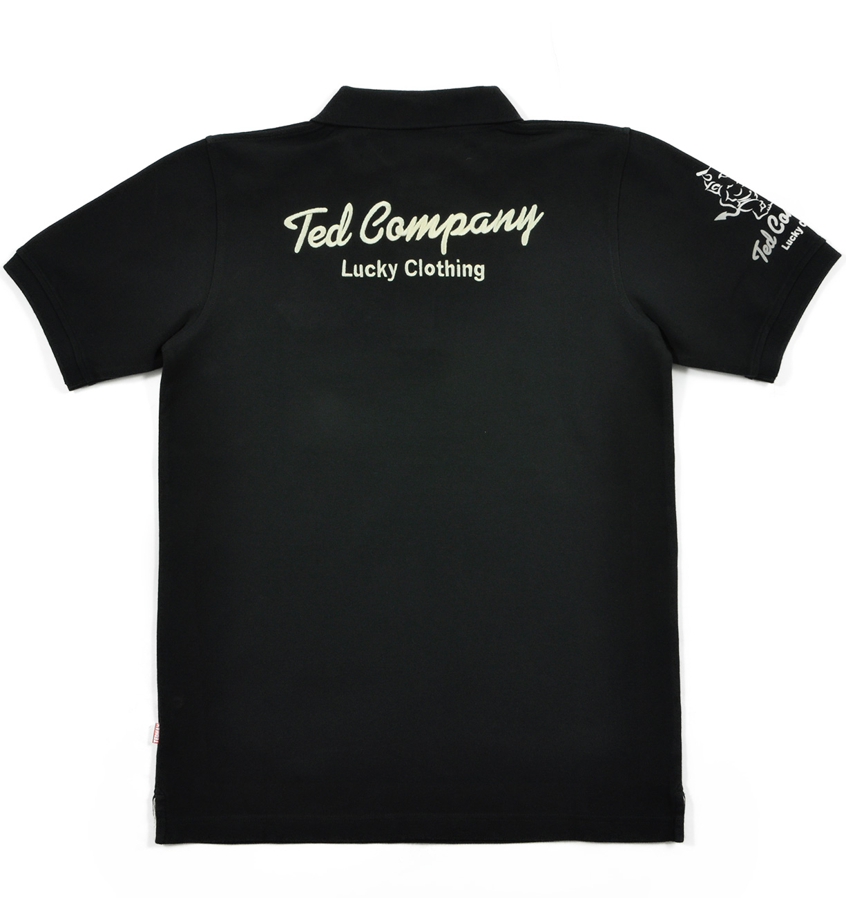 胸にはチェッカーフラッグと珍しく正面を向いたテッドマンの顔のワンポイント、そして背面は文字だけという非常にシンプルにまとめられた一枚。右袖にもイラストが入る。